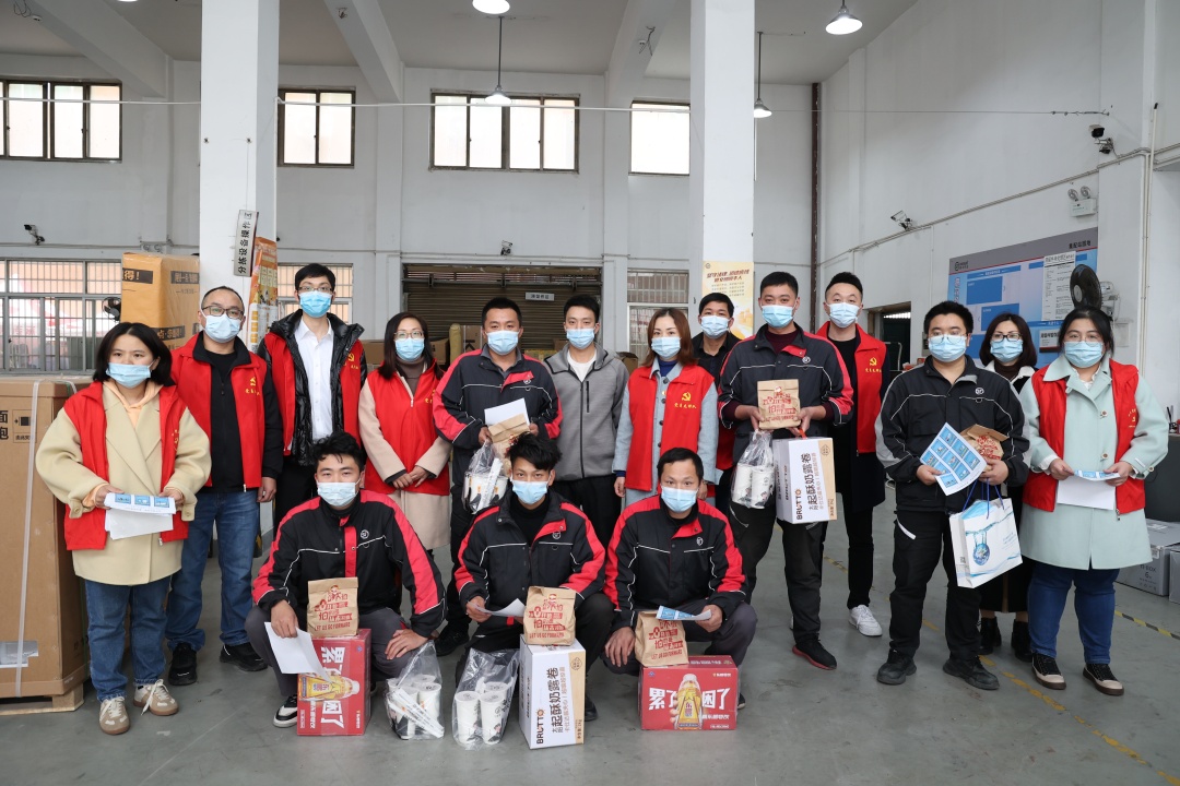 慰問組先后來到順豐快遞網點、公司保安室、高速路口,了解一線防疫人員的工作狀況,向一直堅守工作崗位的他們表示衷心感謝,并送上口罩、蛋糕、漢堡、雞腿、飲料等慰問品。